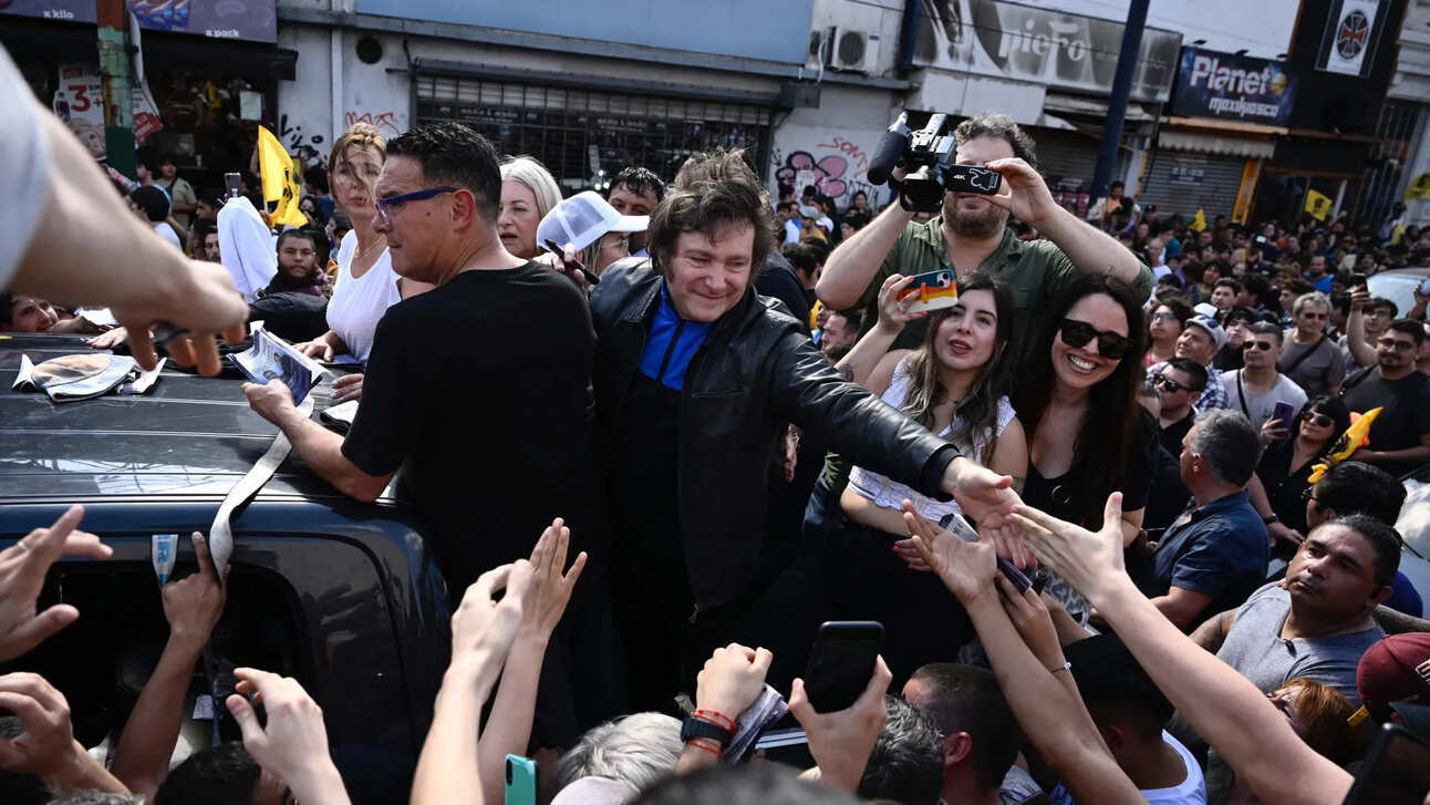 Presidential candidate Javier Milei greeting supporters. | Source: Photo: Luis Robayo/AFP via Getty Images