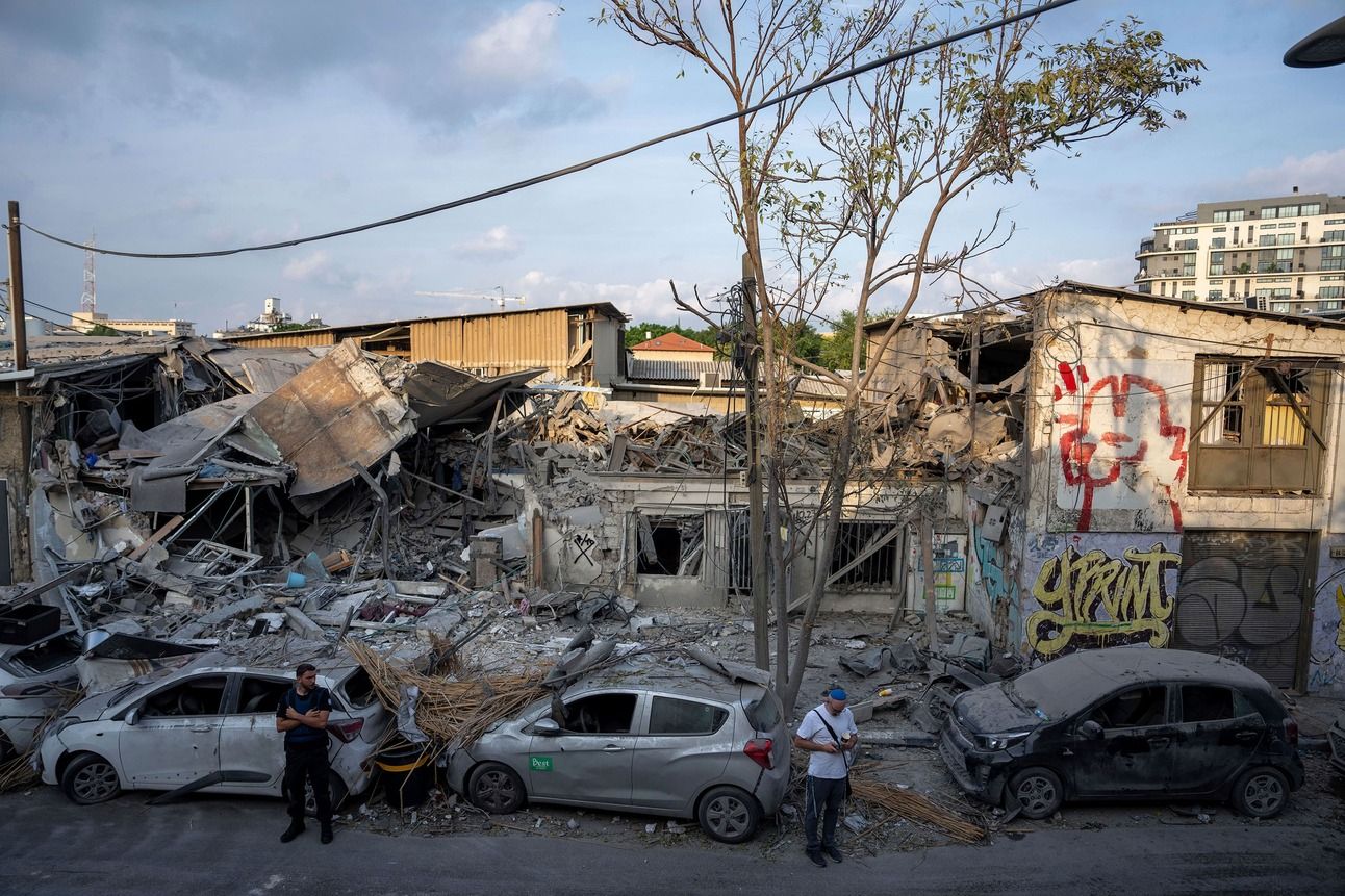Rubble of a building in Tel Aviv, Israel, on Sunday, October 8. Source: Oded Balilty/AP